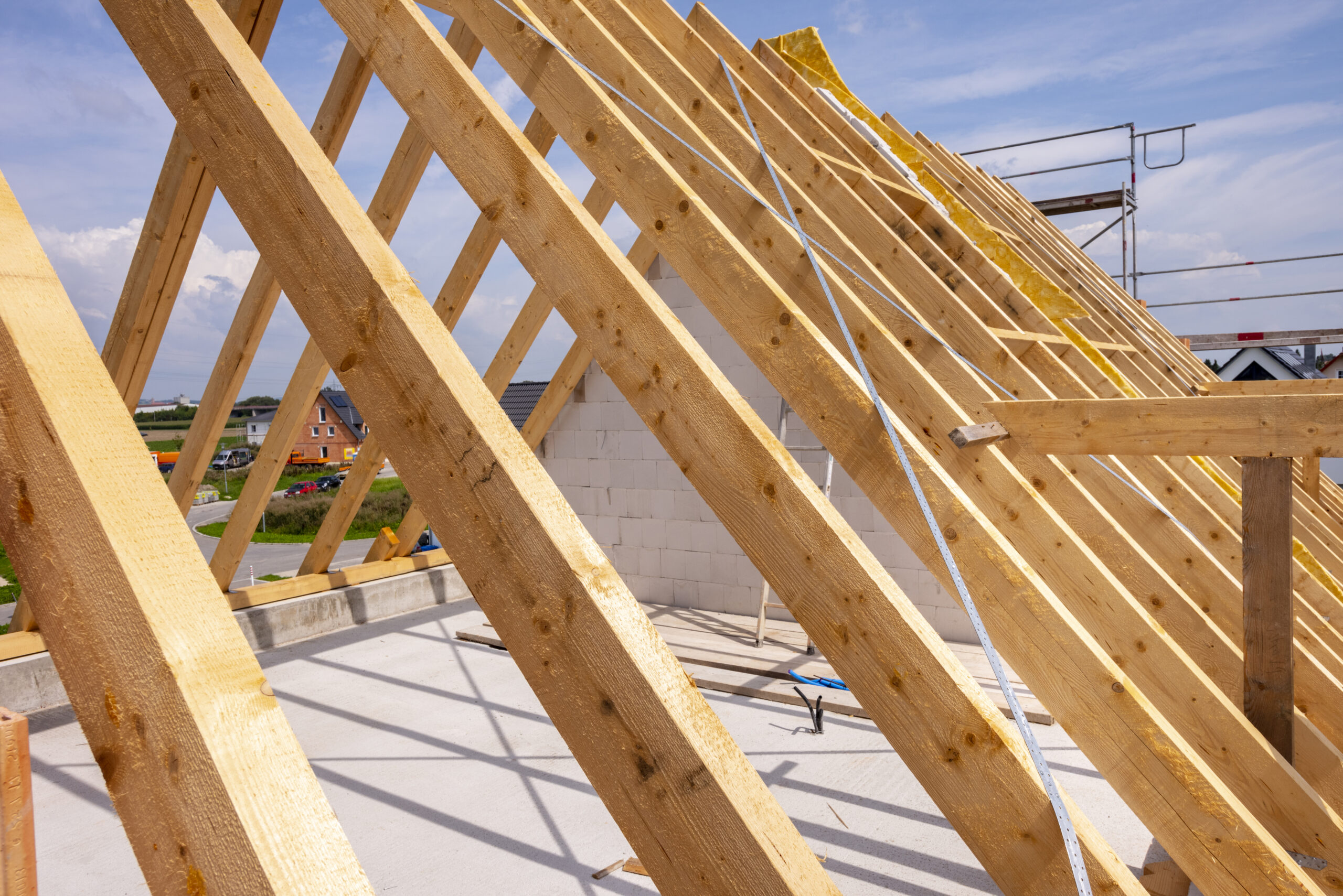 Więźba dachowa to kluczowy element konstrukcji budynku. W skład kompletu więźby wchodzą m.in.: krokwie, murłaty, płatwie, kalenice, jętki, słupy, kleszcze, miecze i inne elementy niezbędne do prawidłowego wykonania konstrukcji dachowej.